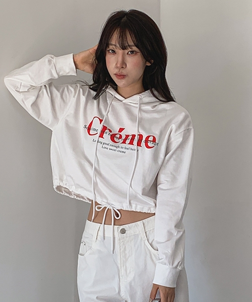 Unique1514 크림 스트링 크롭후드~ > 탑