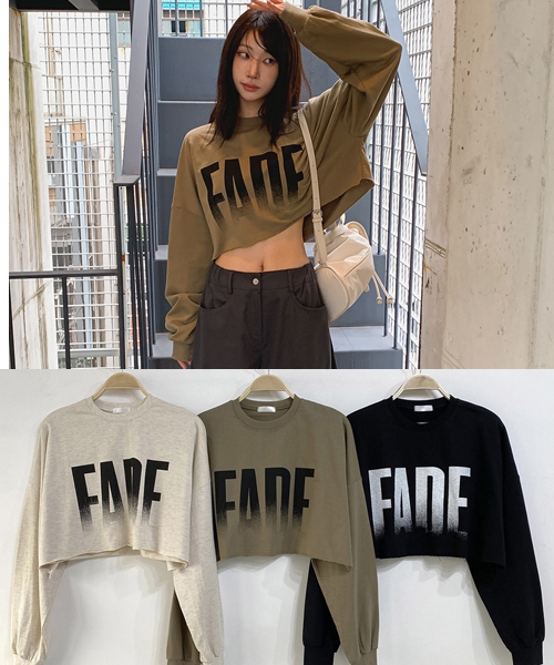 Unique1515 페이드 크롭맨투맨~ > 탑