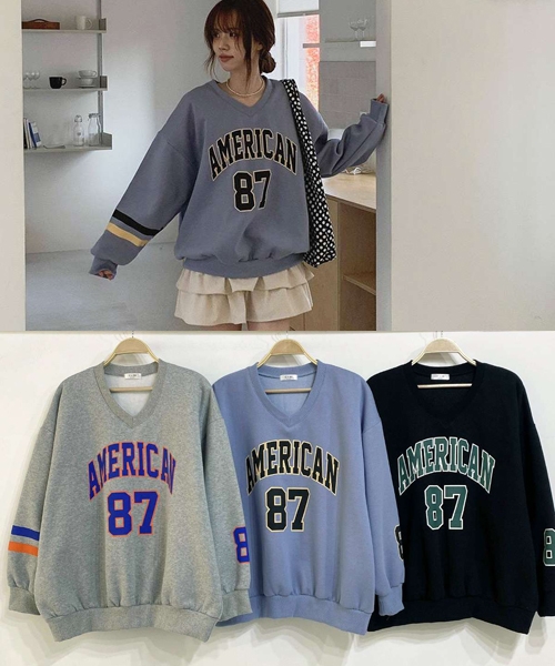 • Unique1534 아메리칸 브이넥 기모맨투맨~