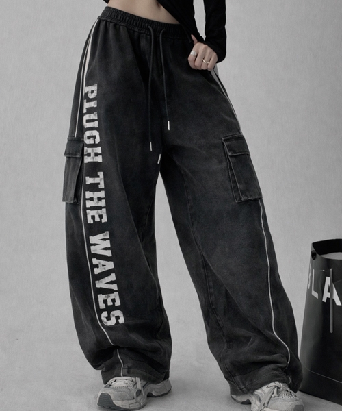 • Unique1550 워싱 레터링 카고팬츠~