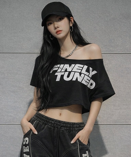 Unique1553 튠 오프숄더 크롭티~ > 탑