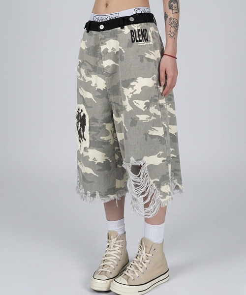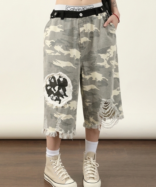 • Unique1571 일러스트 빈티지 카모반바지~
